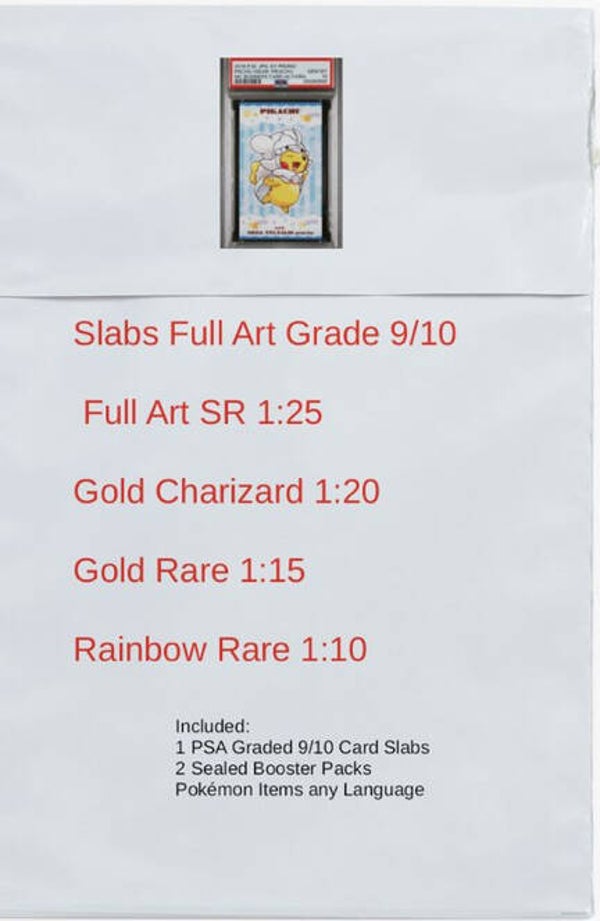 This Graded card Slabs Pack brings 3 Graded 8-10 Cards. Card are hand selected and will only include Full Art , Art Rares, Rainbow Rares, Gold Secret Rares, Secret Rares and will only include Reverse holos or Holos that are valuable or from retro sets. The Greaded Slabs Pack will contain 3 randomly selected Graded Slabs from Various Grading companies.