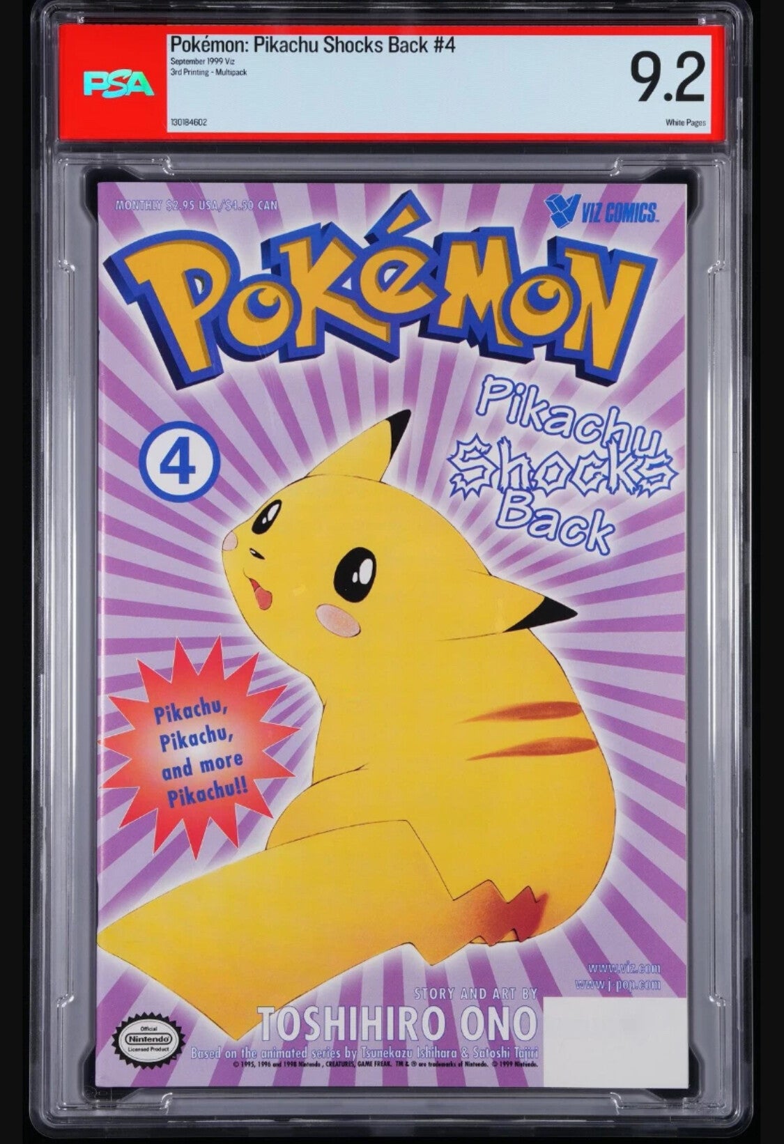 This is a 1999 Viz Comics Pikachu Shocks Back #4 Comic Book, Graded by PSA 9.2 to make a great item in your Pokemon Collection.